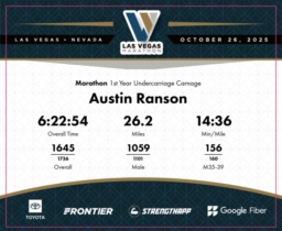 Date: Oct. 26, 2025 Participant: Austin Ranson #2527 Race: 2025 Las Vegas Marathon Distance: 26.2 miles