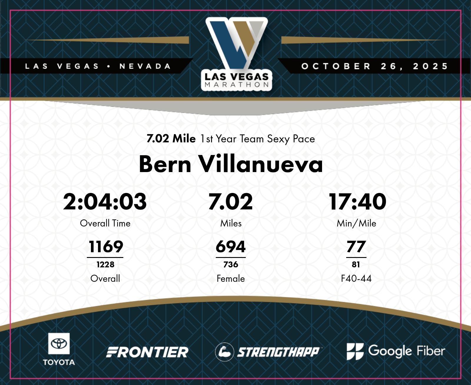 Date: Oct. 26, 2025 Participant: Bern Villanueva #6533 Race: 2025 Las Vegas 7.02 Mile Distance: 7.02 miles