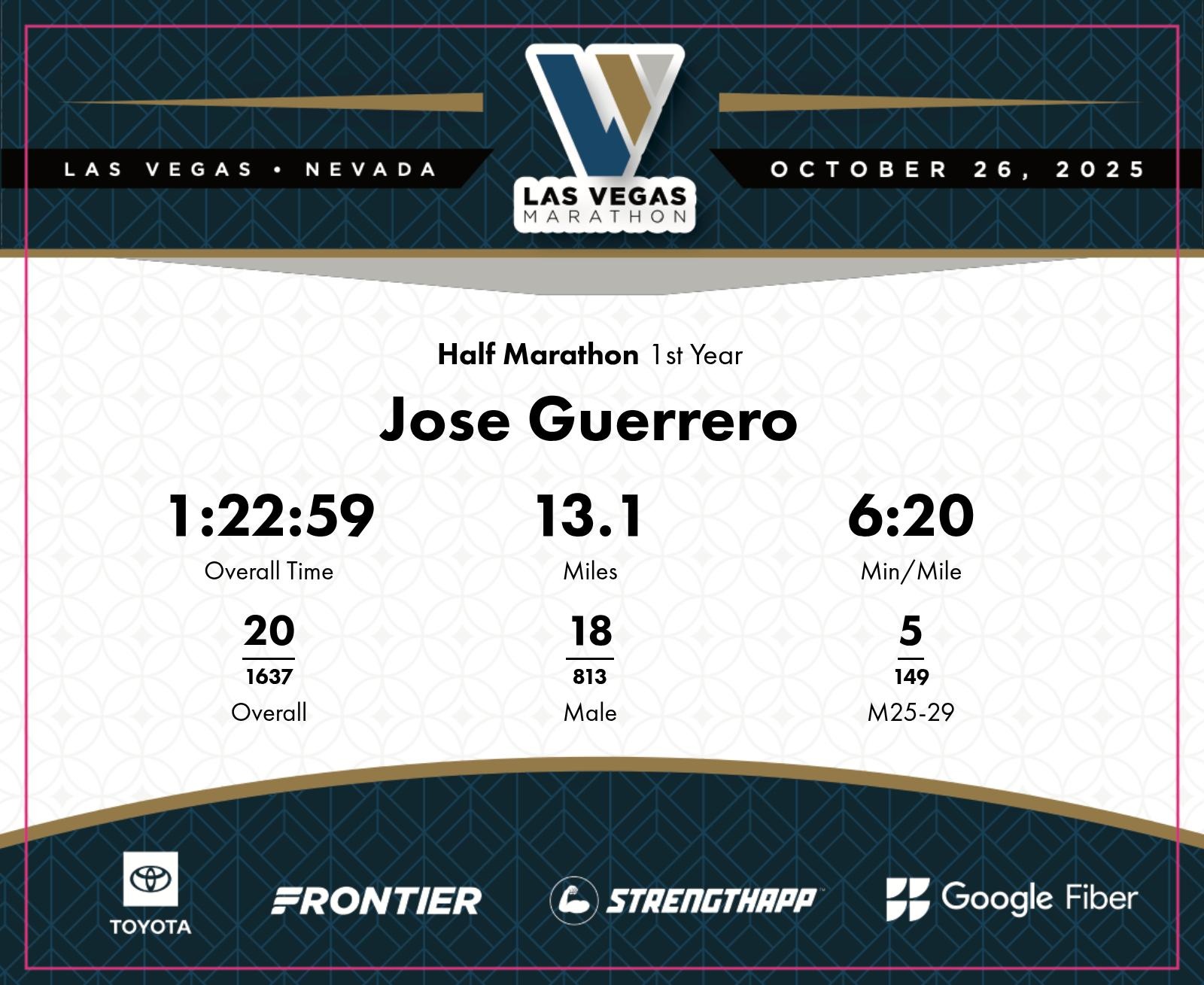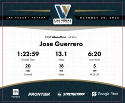 Date: Oct. 26, 2025 Participant: Jose Guerrero #3953 Race: 2025 Las Vegas Half Marathon Distance: 13.1 miles