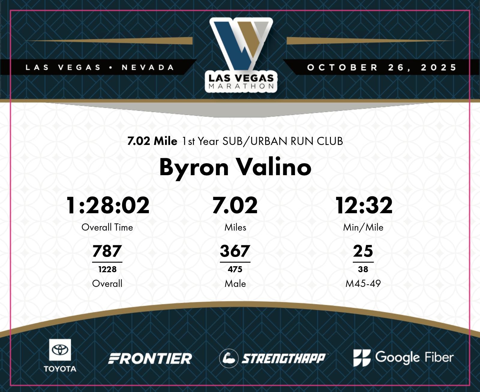 Date: Oct. 26, 2025 Participant: Byron Valino #6503 Race: 2025 Las Vegas 7.02 Mile Distance: 7.02 miles