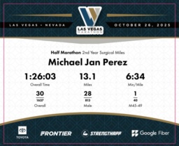 Date: Oct. 26, 2025 Participant: Michael Jan Perez #4492 Race: 2025 Las Vegas Half Marathon Distance: 13.1 miles