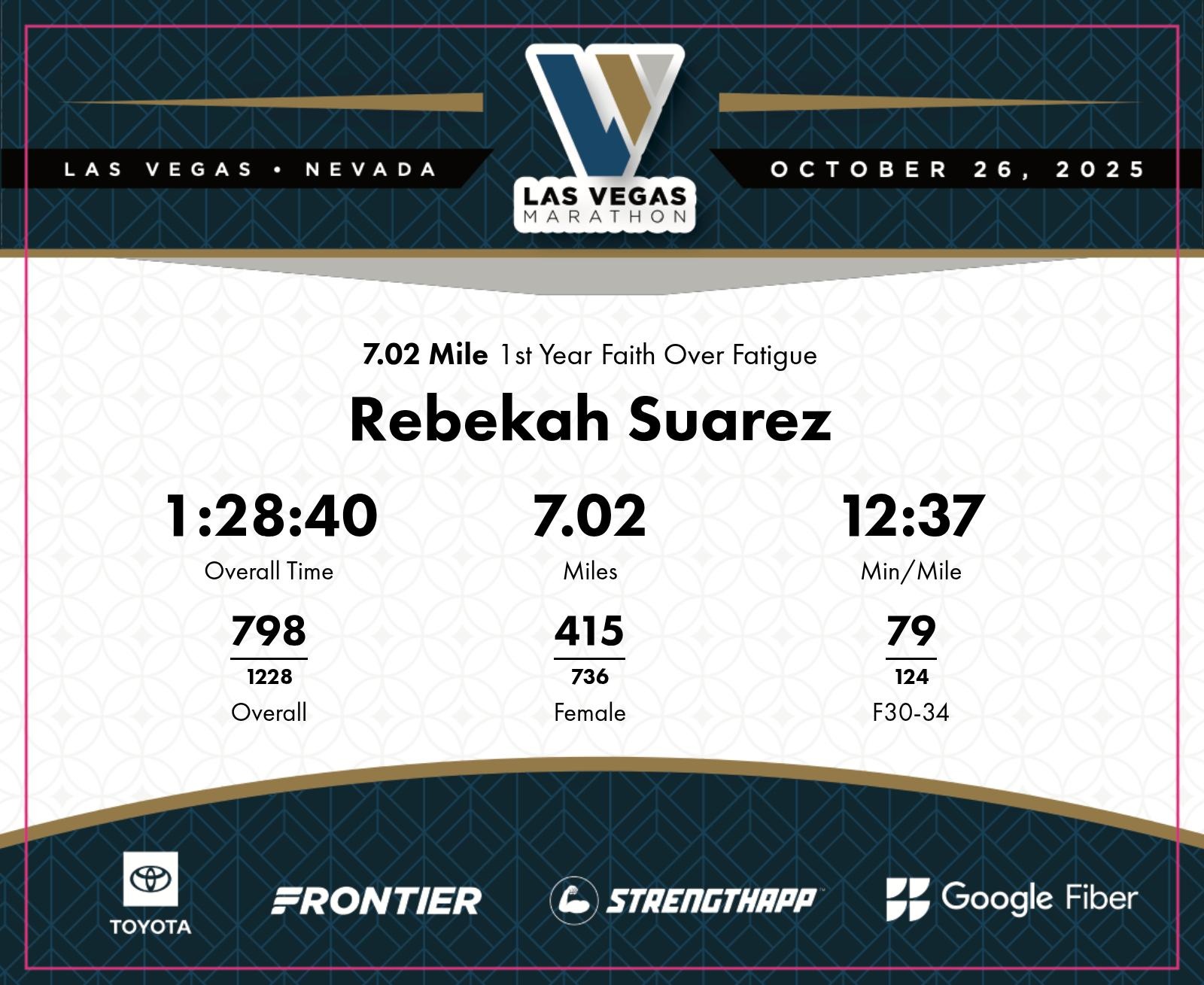 Date: Oct. 26, 2025 Participant: Rebekah Suarez #6438 Race: 2025 Las Vegas 7.02 Mile Distance: 7.02 miles