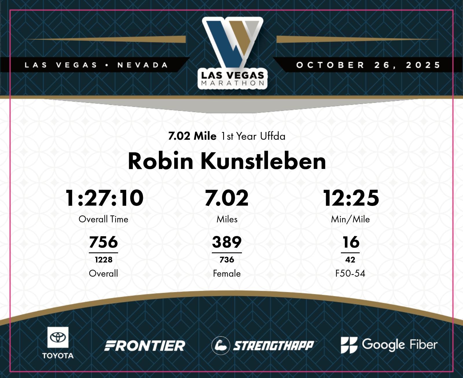 Date: Oct. 26, 2025 Participant: Robin Kunstleben #5957 Race: 2025 Las Vegas 7.02 Mile Distance: 7.02 miles