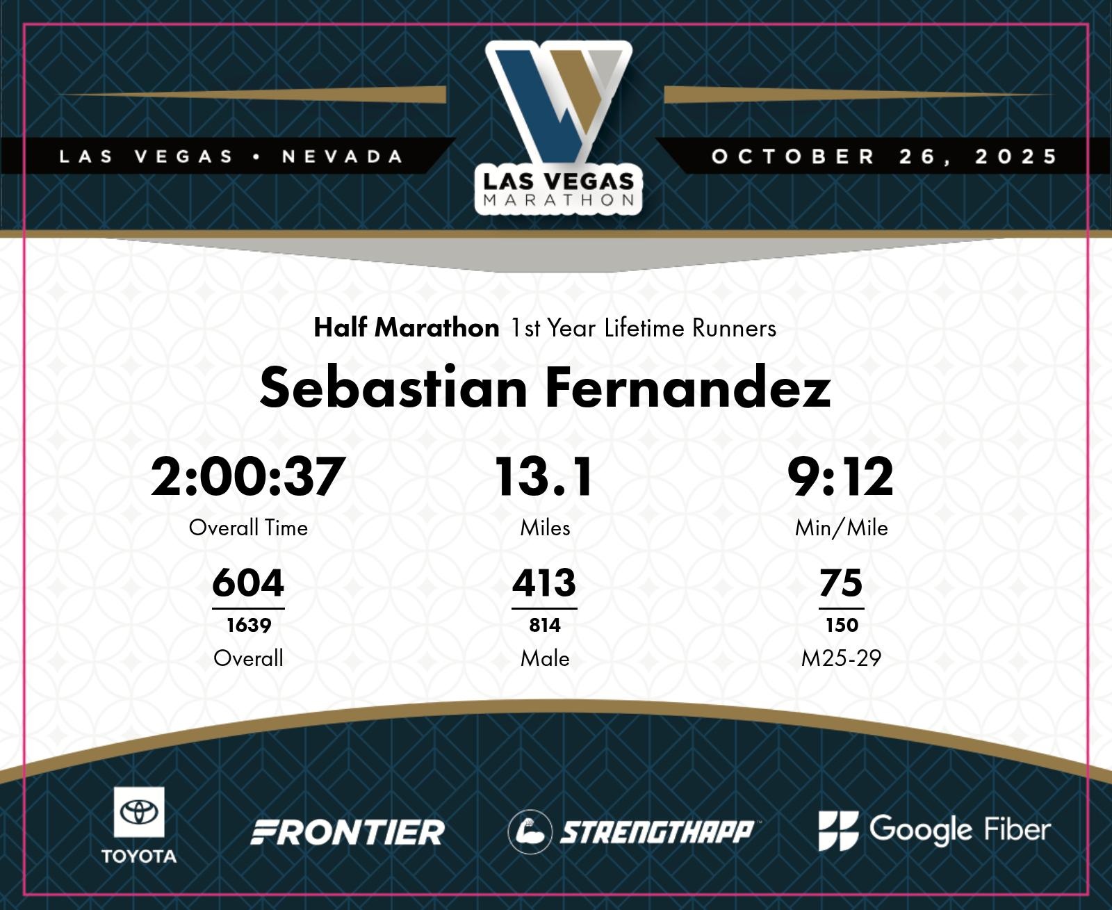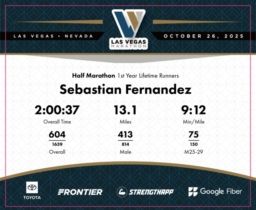 Date: Oct. 26, 2025 Participant: Sebastian Fernandez #3828 Race: 2025 Las Vegas Half Marathon Distance: 13.1 miles