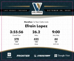 Date: Oct. 26, 2025 Participant: Efrain Lopez #2157 Race: 2025 Las Vegas Marathon Distance: 26.2 miles