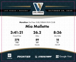 Date: Oct. 26, 2025 Participant: Mia Mallette #3180 Race: 2025 Las Vegas Marathon Distance: 26.2 miles