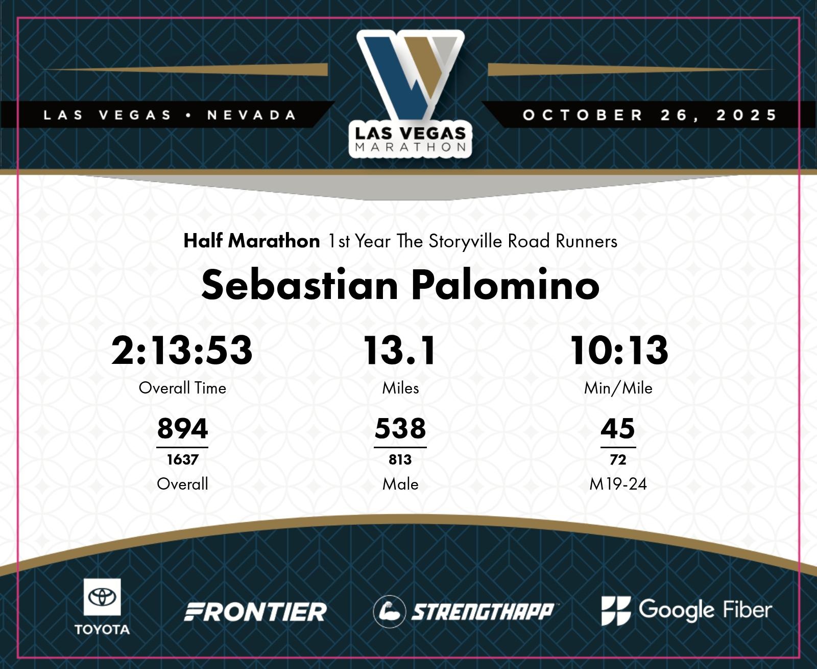 Date: Oct. 26, 2025 Participant: Sebastian Palomino #4449 Race: 2025 Las Vegas Half Marathon Distance: 13.1 miles