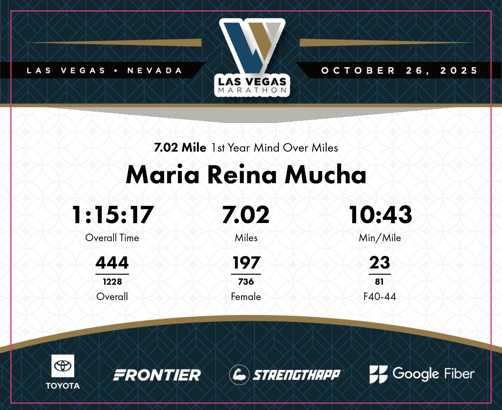 Date: Oct. 26, 2025 Participant: Maria Reina Mucha #4372 Race: 2025 Las Vegas 7.02 Mile Distance: 7.02 miles