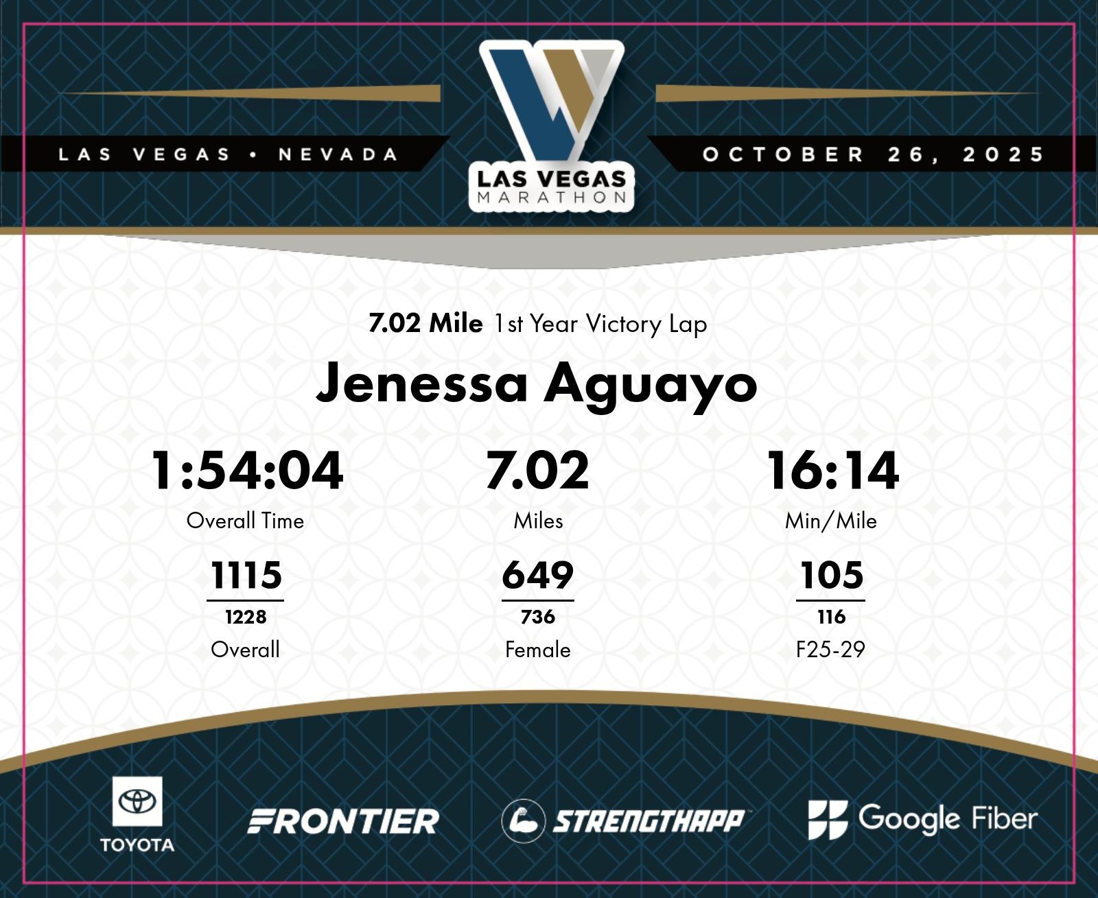 Date: Oct. 26, 2025 Participant: Jenessa Aguayo #5414 Race: 2025 Las Vegas 7.02 Mile Distance: 7.02 miles