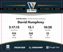 Date: Oct. 26, 2025 Participant: David Humphrey #4040 Race: 2025 Las Vegas Half Marathon Distance: 13.1 miles