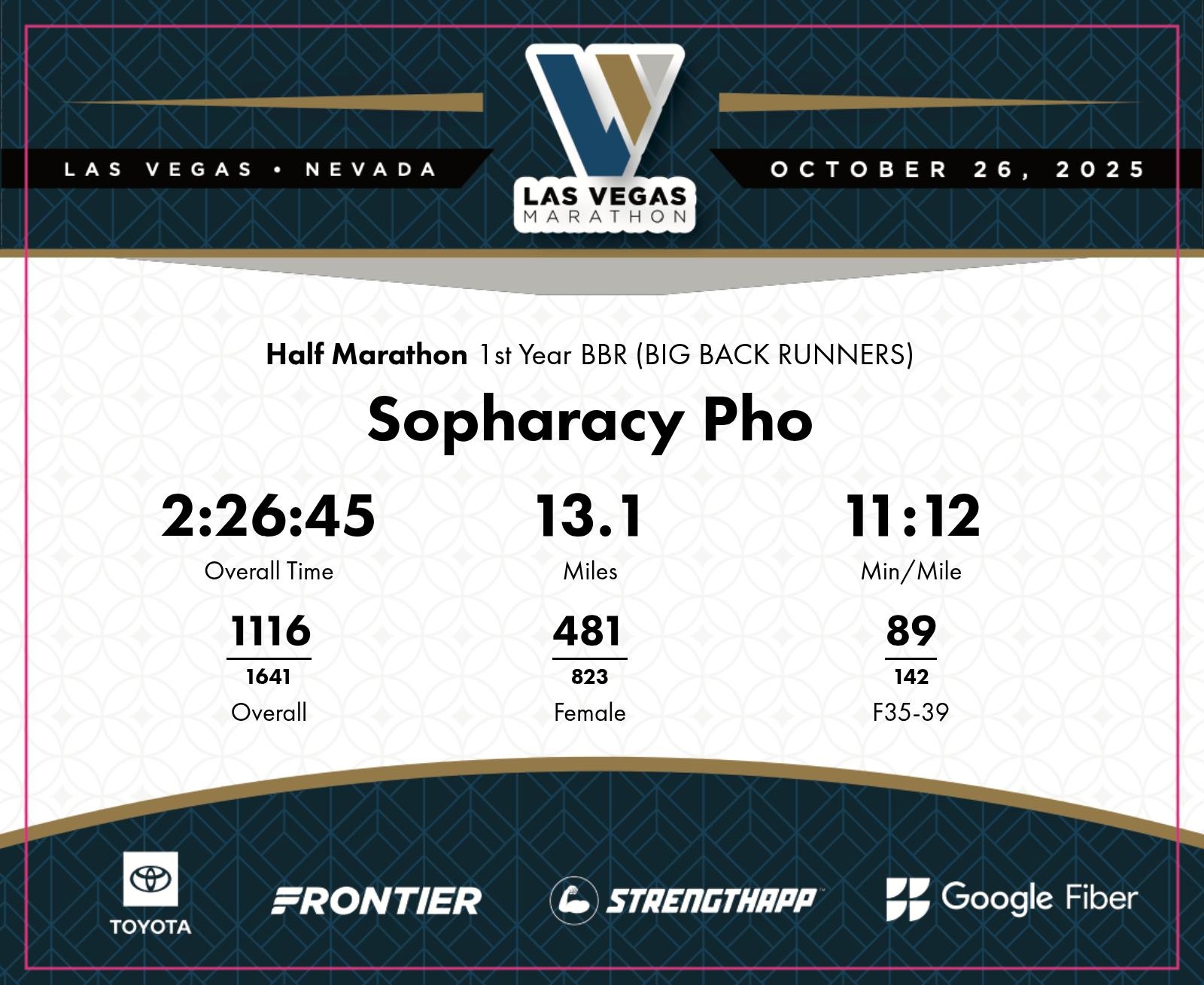 Date: Oct. 26, 2025 Participant: Sopharacy Pho #4510 Race: 2025 Las Vegas Half Marathon Distance: 13.1 miles