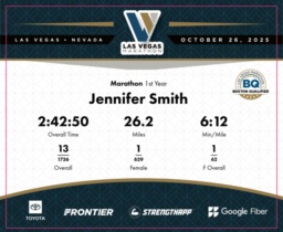 Date: Oct. 26, 2025 Participant: Jennifer Smith #1242 Race: 2025 Las Vegas Marathon Distance: 26.2 miles