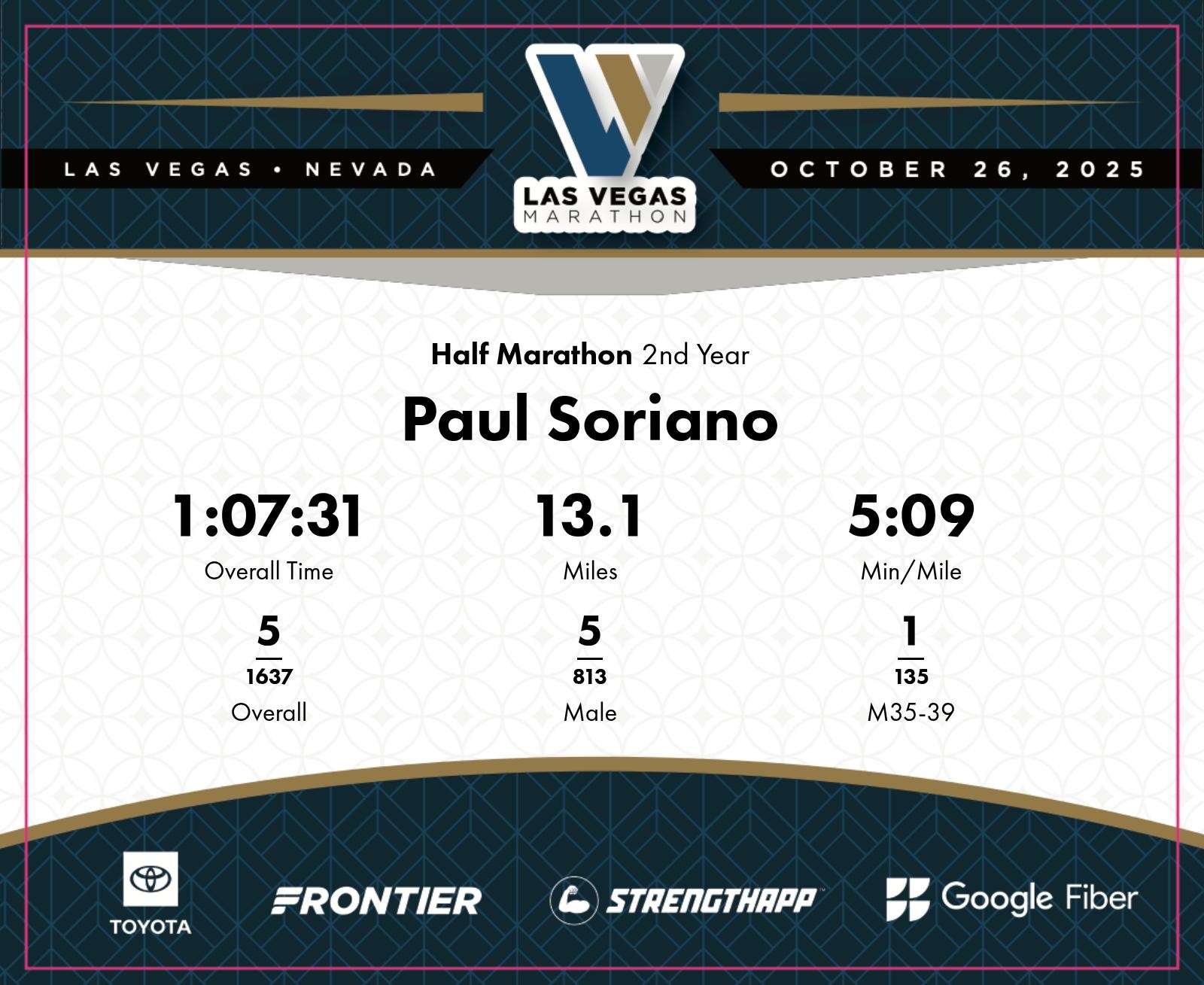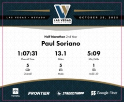 Date: Oct. 26, 2025 Participant: Paul Soriano #3344 Race: 2025 Las Vegas Half Marathon Distance: 13.1 miles