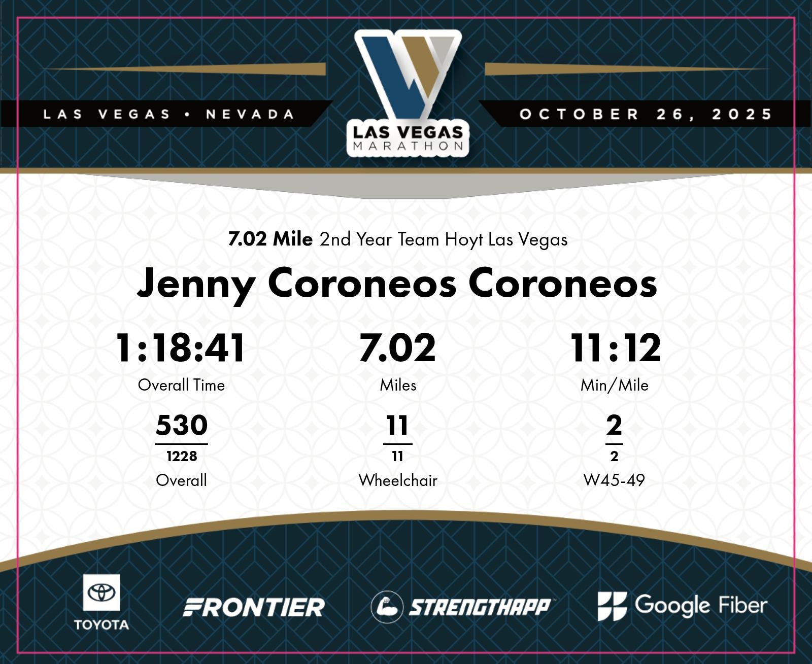 Date: Oct. 26, 2025 Participant: Jenny Coroneos Coroneos #6608 Race: 2025 Las Vegas 7.02 Mile Distance: 7.02 miles