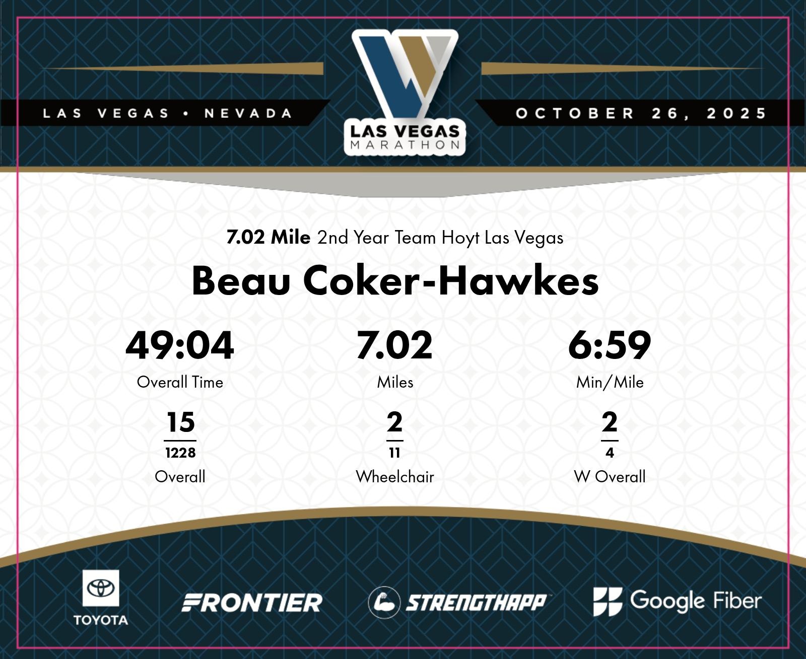 Date: Oct. 26, 2025 Participant: Beau Coker-Hawkes #6605 Race: 2025 Las Vegas 7.02 Mile Distance: 7.02 miles