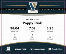 Date: Oct. 26, 2025 Participant: Poppy Tank #6733 Race: 2025 Las Vegas 7.02 Mile Distance: 7.02 miles