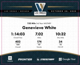 Date: Oct. 26, 2025 Participant: Genevieve White #6826 Race: 2025 Las Vegas 7.02 Mile Distance: 7.02 miles